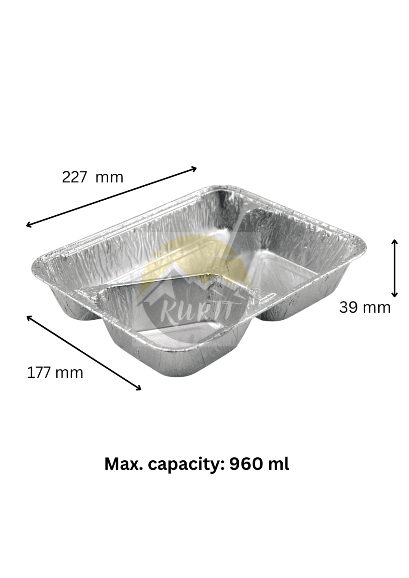 Aluminiumbakjes 960G 3-verdeeld met aluminium deksels - 100 stuks