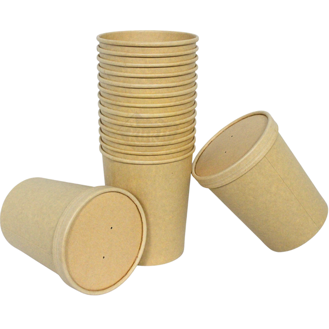 Kartonnen soepbeker bruin kraft is een handige take away verpakking met een milieuvriendelijke uitstraling. De soup cup kan gebruikt worden voor het vervoeren van verse soep, maar leent zich ook uitstekend voor consumptie on the go. Uiteraard is deze beker eveneens geschikt voor andere warme of koude inhoud, zoals: saus, noodles, ijs, stoofschotels, chili con carne en dranken.