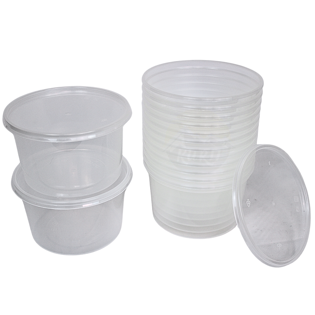 De plastic potten van 500ml zijn geschikt voor de magnetron. Ook zijn de potten erg stevig en uitermate geschikt voor delicatessen, soep, snoepgoed of voor de muntjes op de kermis!