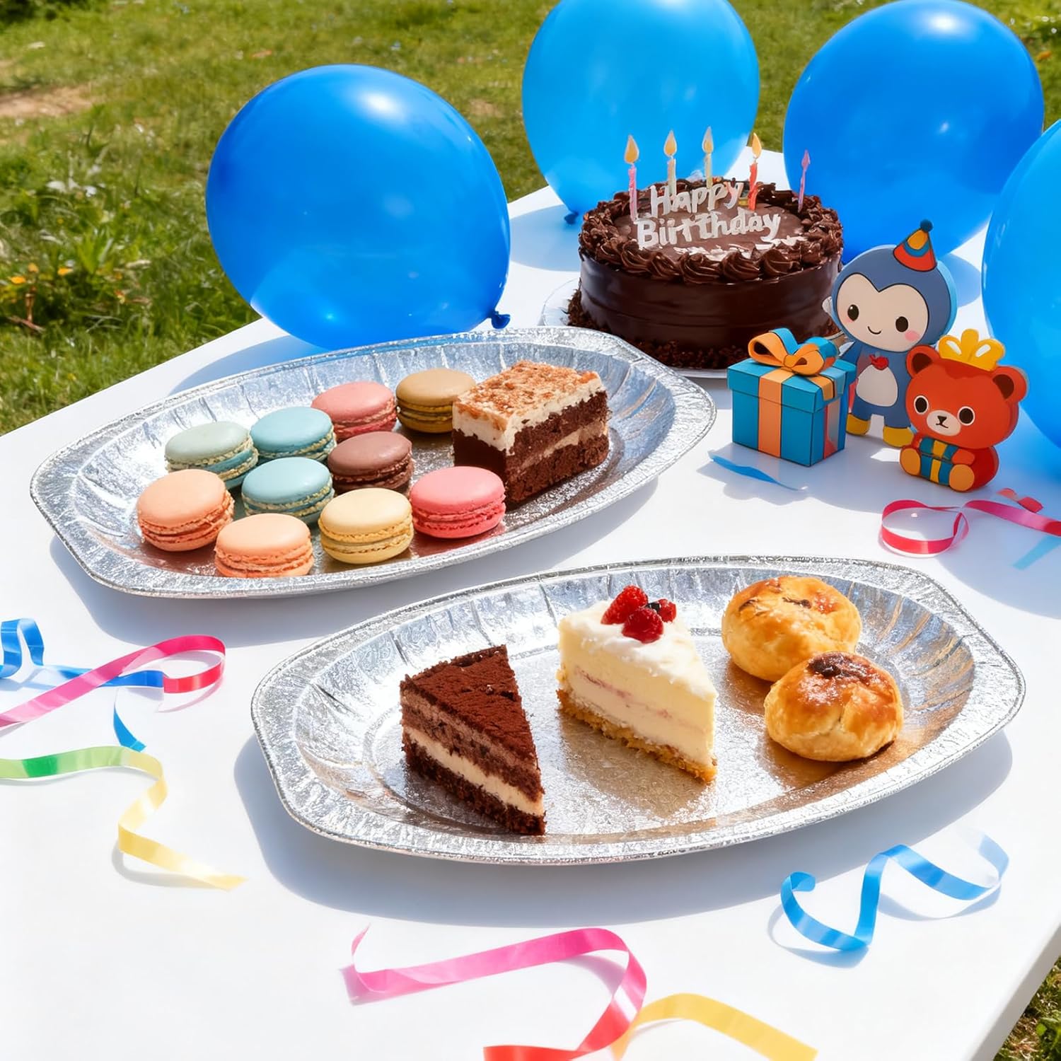 Lot de 10 plats de service en aluminium (43 cm) incassables - vaisselle de haute qualité - plats en aluminium - plats plats - barbecue - vaisselle traiteur