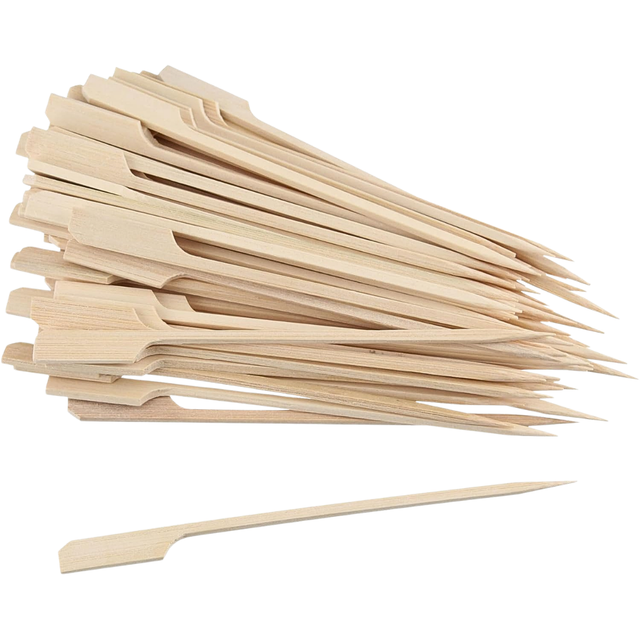 Nous proposons ces brochettes en forme de drapeau en quatre tailles : 12 cm, 15 cm, 18 cm et 25 cm. Elles sont souvent utilisées pour présenter des tapas, des kebabs et des cocktails de façon naturelle.